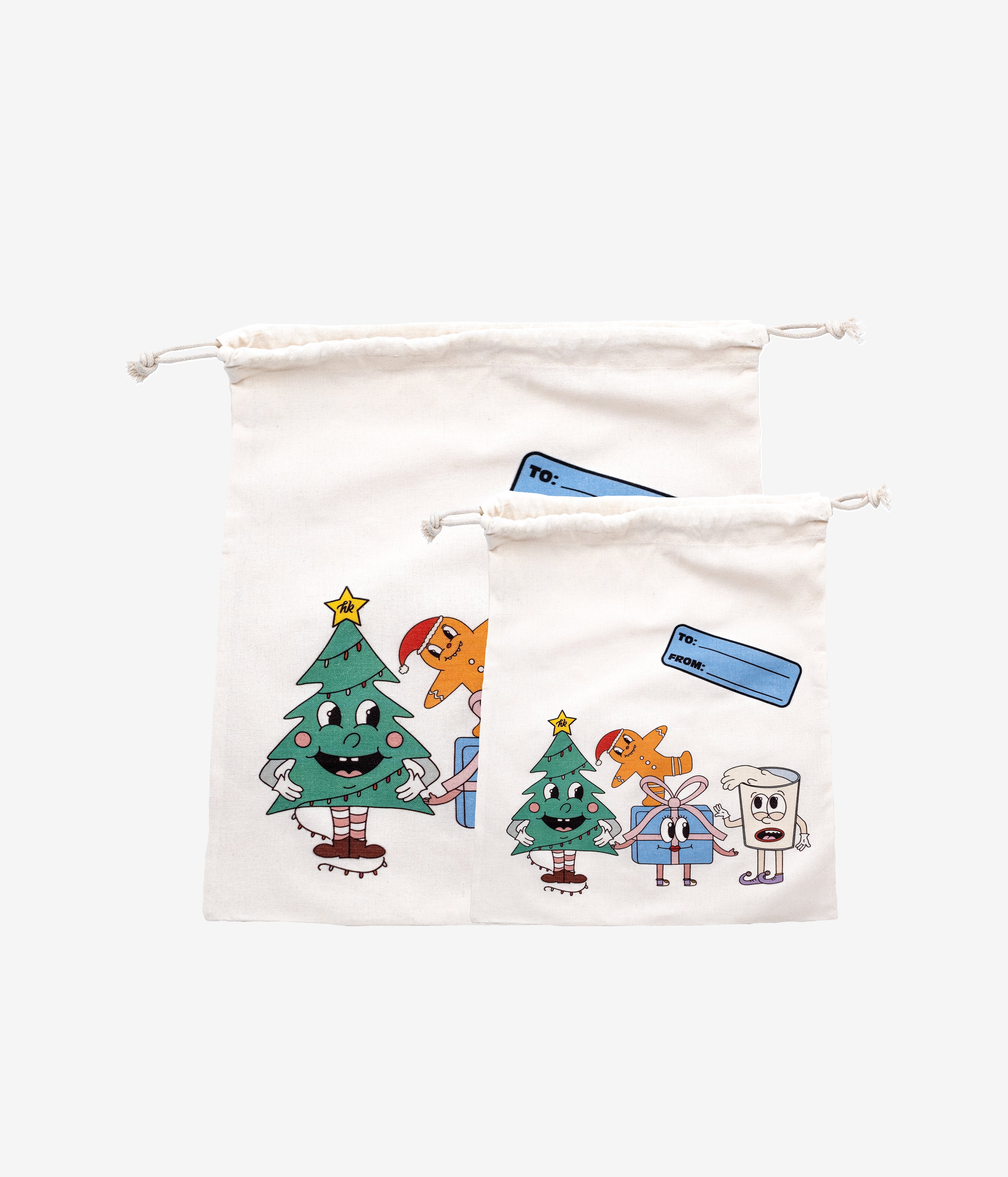Lovely reusable Christmas bag made of quality, opaque cotton. Use a washable coloring pen to write on it, so it can be reuse for many more surprise!