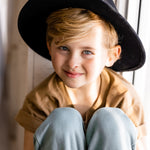 Give your kid a grown up look with our new topper hat. This black and brown hat is a statement piece to have in your kid's wardrobe. It will leave no one indifferent!