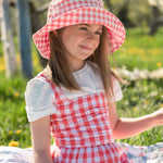 Thanks to its bucket-style design, this hat provides ample coverage for the face, ears, and neck, keeping your child protected from the elements.The adjustable chin strap ensures a secure fit, keeping the hat in place no matter how active they get. A breakaway clip on the strap will give you peace of mind in case your kiddo gets himself in an awkward position (let's face it, that’s what kids do best!). Made with UPF50 fabric, it will keep your kid's head safe from the sun.